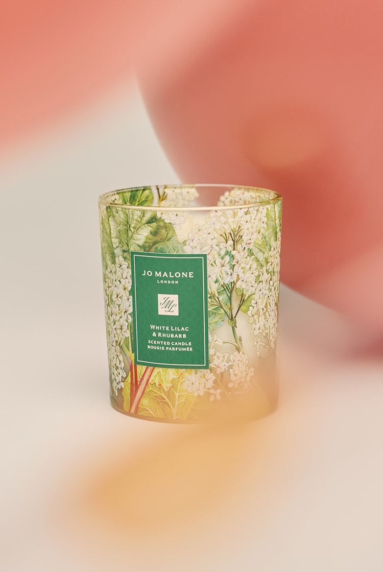 The collection of Charity Candles includes: daring White Lilac & Rhubarb Charity Candle.
